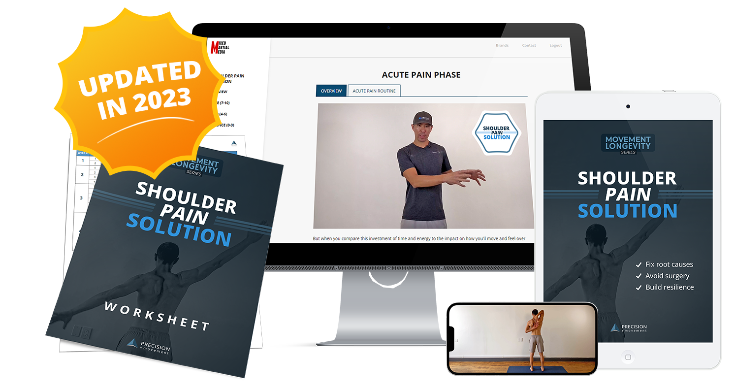 The Shoulder Pain Solution is a science-based online program that fixes the root causes of issues for lasting relief. Shoulder impingement, rotator cuff tears, labral/SLAP tears, AC joint dysfunction, subacromial bursitis, winged scapula, serratus anterior dysfunction and more - whatever your problem we’ve got you covered.